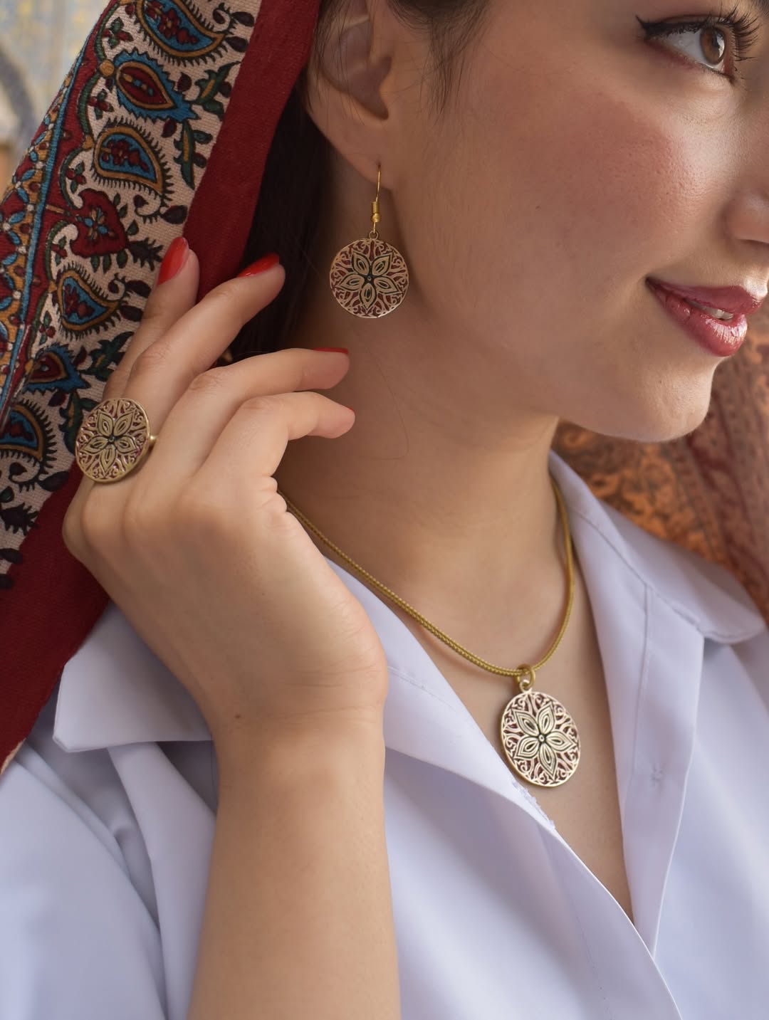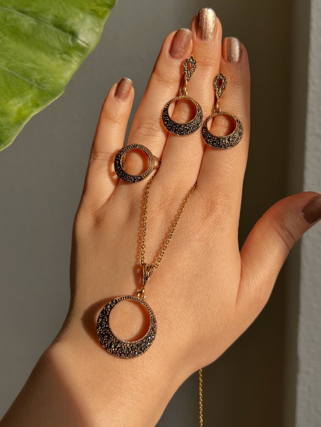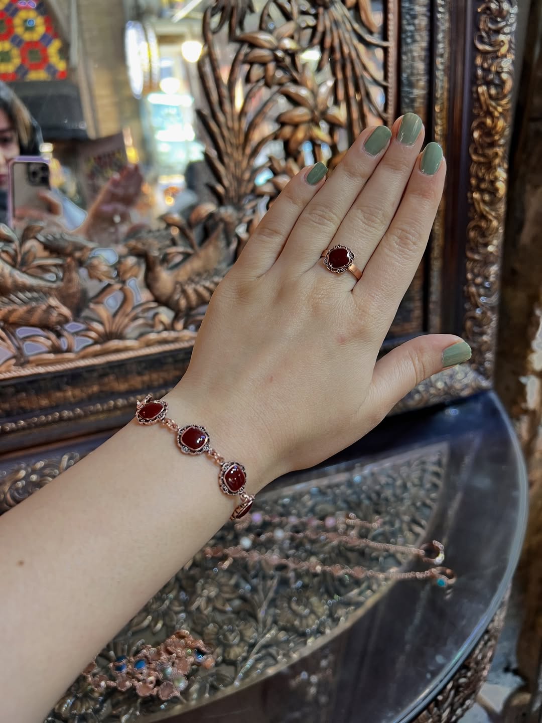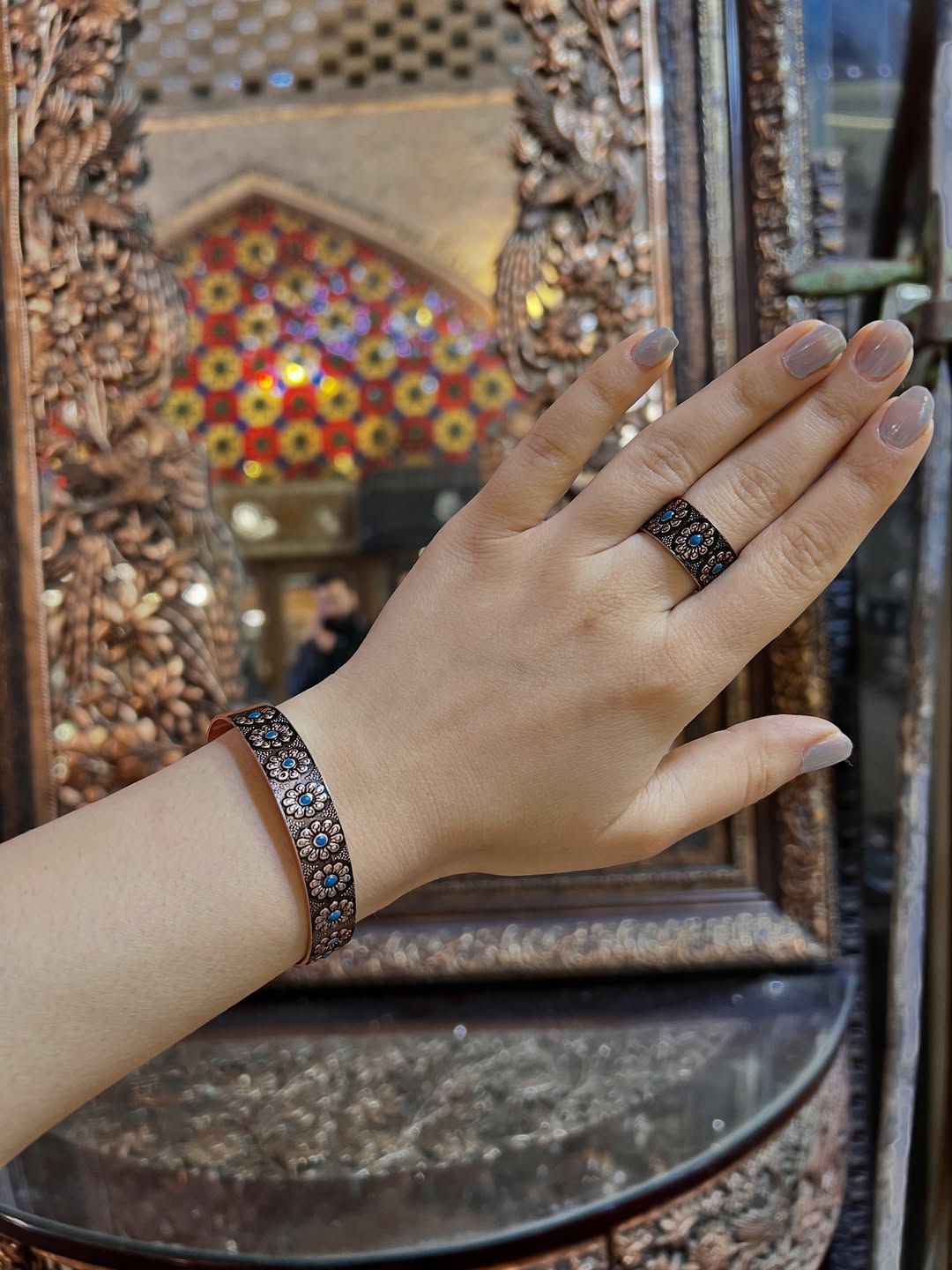 دستبند و انگشتر با طرح سنتی فیروزهای کد 1735