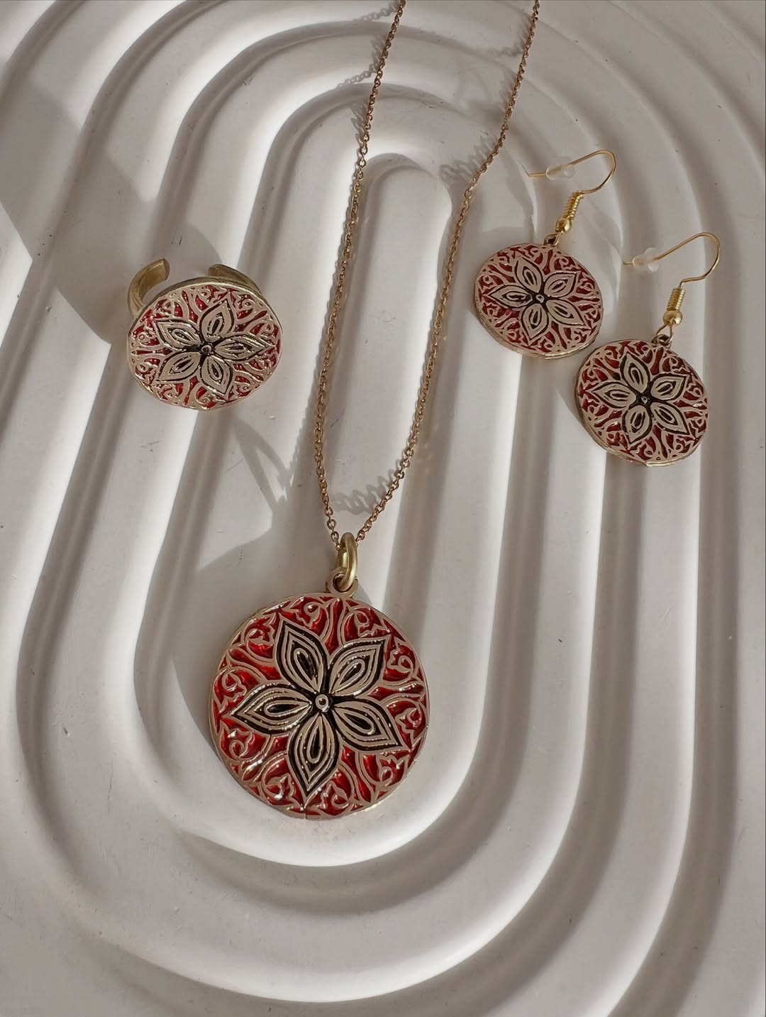 نیمست جذاب از خانواده طلاروسها مزین به رنگ مینا و رنگ ثابت انگشتر ۱۸۵ تومان گوشواره ۲۱۵ تومان پلاک و زنجیر برنج ۲۱۵ تومان برای سفارش تکی پشتیبانی واتساپ پیام دهید.