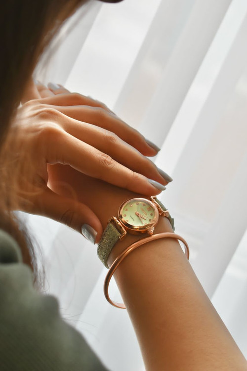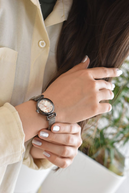 ترکیبی از زیبایی و کیفیت! این مدل با بند چرمی دوردوخت و بک استیل ضدحساسیت، مناسب استفادهی روزمره و مجلسی است. طراحی ظریف بند، جلوهای خاص به استایل شما میبخشد.
